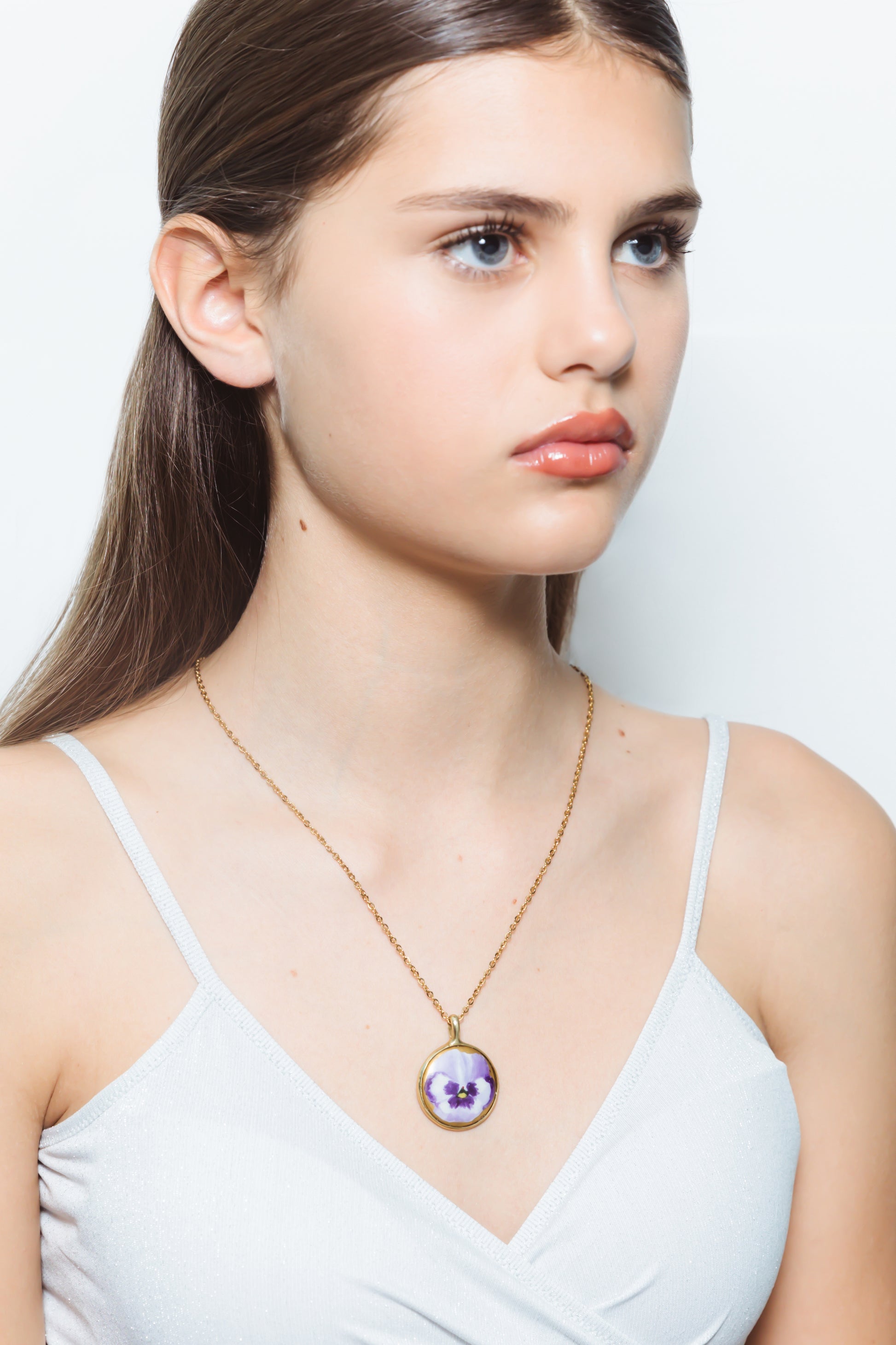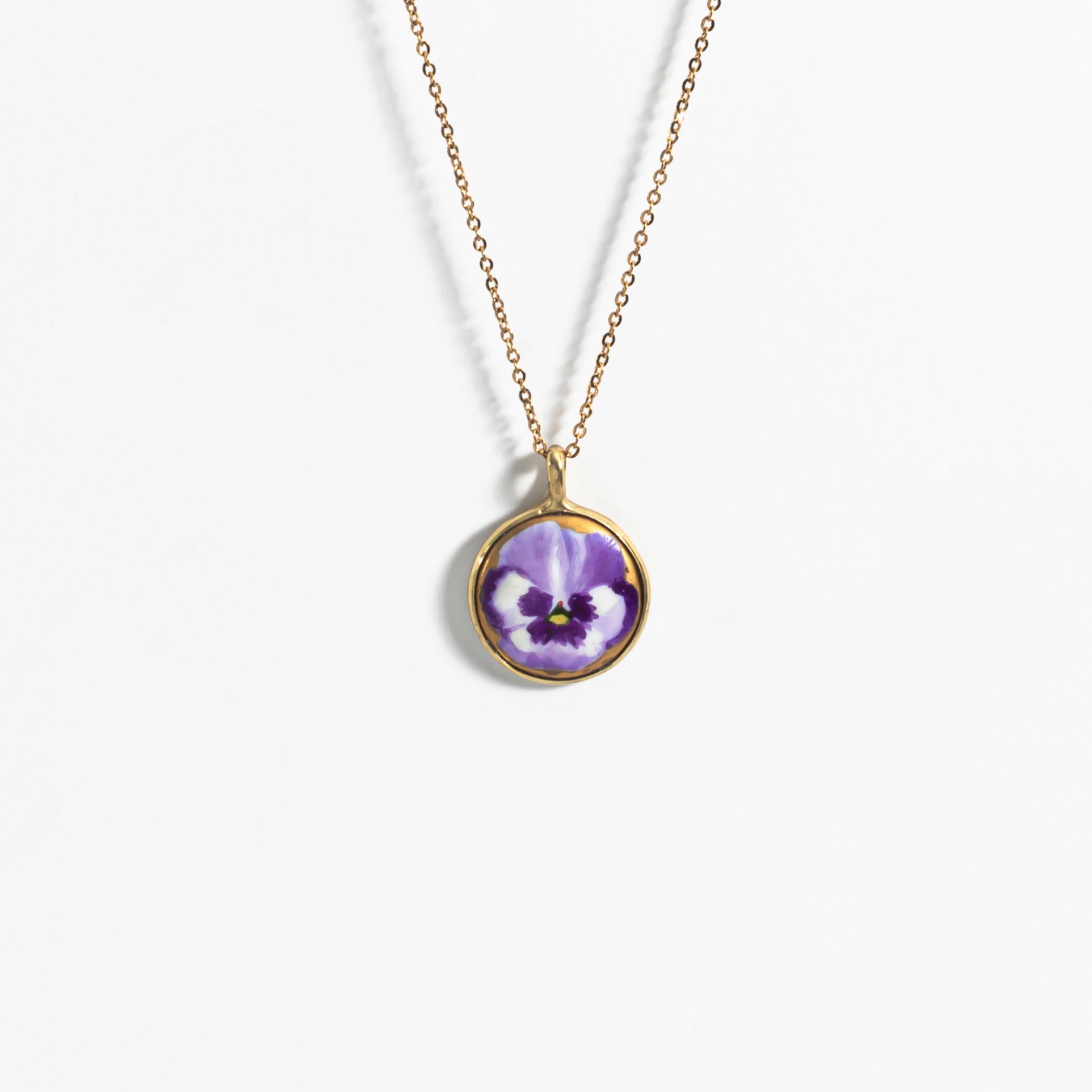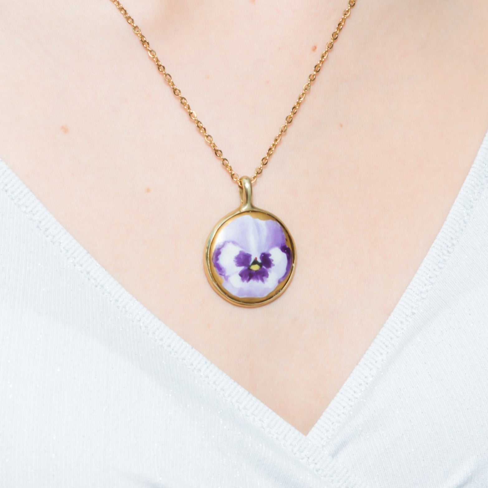 Pendant made of a rare antique collector's Japanese button, in pottery from the 1900s, featuring the hibiscus flower.